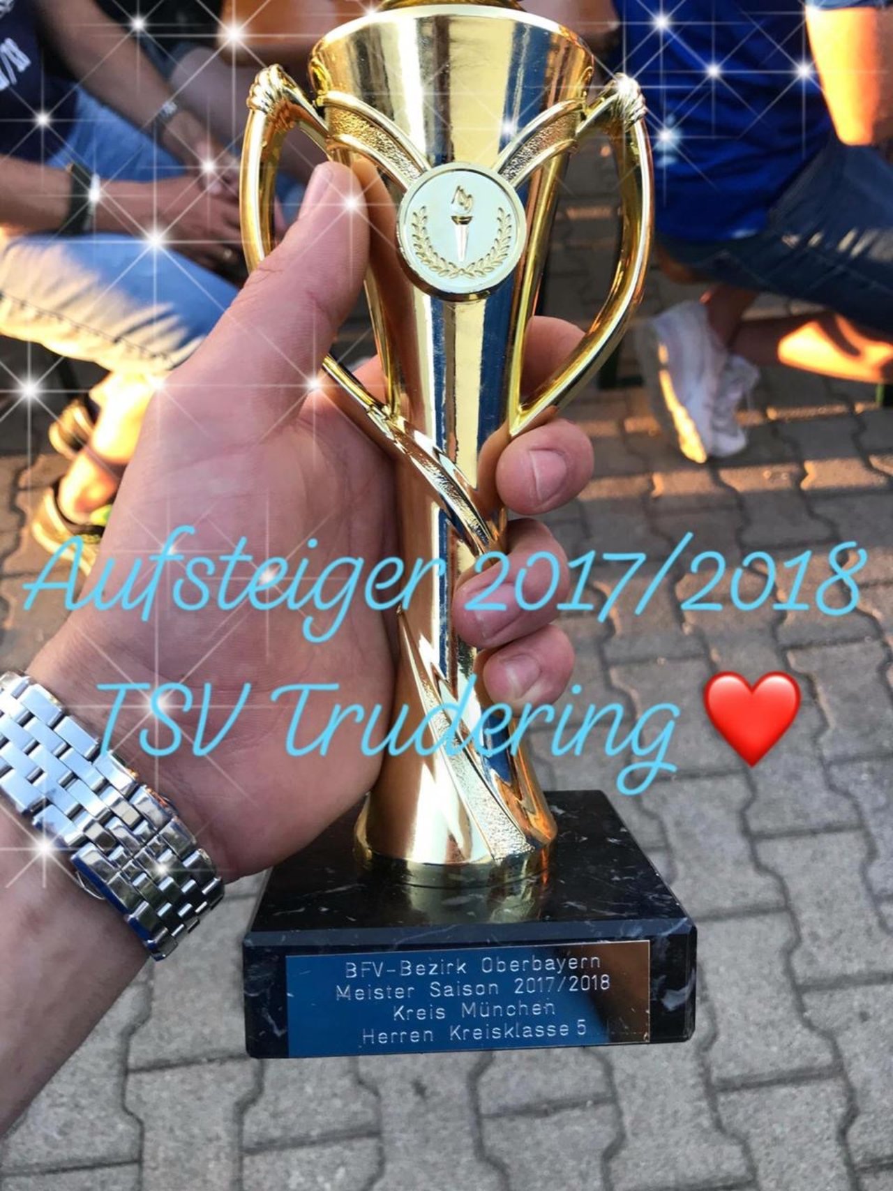 Schlußpfiff. Das Spielfeld wurde gestürmt, von Spielerfrauen, die nahezu komplett mit blauen Shirts, samt Rückennummer und Namen erschienen, sehr geil Mädls, sowie der zweiten und der dritten Mannschaft, Fans und von wem auch immer. Der Jubel kannte keine Grenzen. Nach sieben Jahren Abstinenz zurück in der Kreisliga. Die oblegatorische Urkunde und den Pokal, nahmen Maxe und Martin Festner entgegen. Beide werden in der kommenden Saison auf eigenen Wunsch nicht mehr im aktiven Kader stehen. Während Maxe seine Karriere beendet, mit einem Freistoß, nicht mit einem Kopfstoß, wie er stets betont, gehört Martin in der kommenden Saison als Torwarttrainer und Stand-By-Keeper dem Trainerstab an.